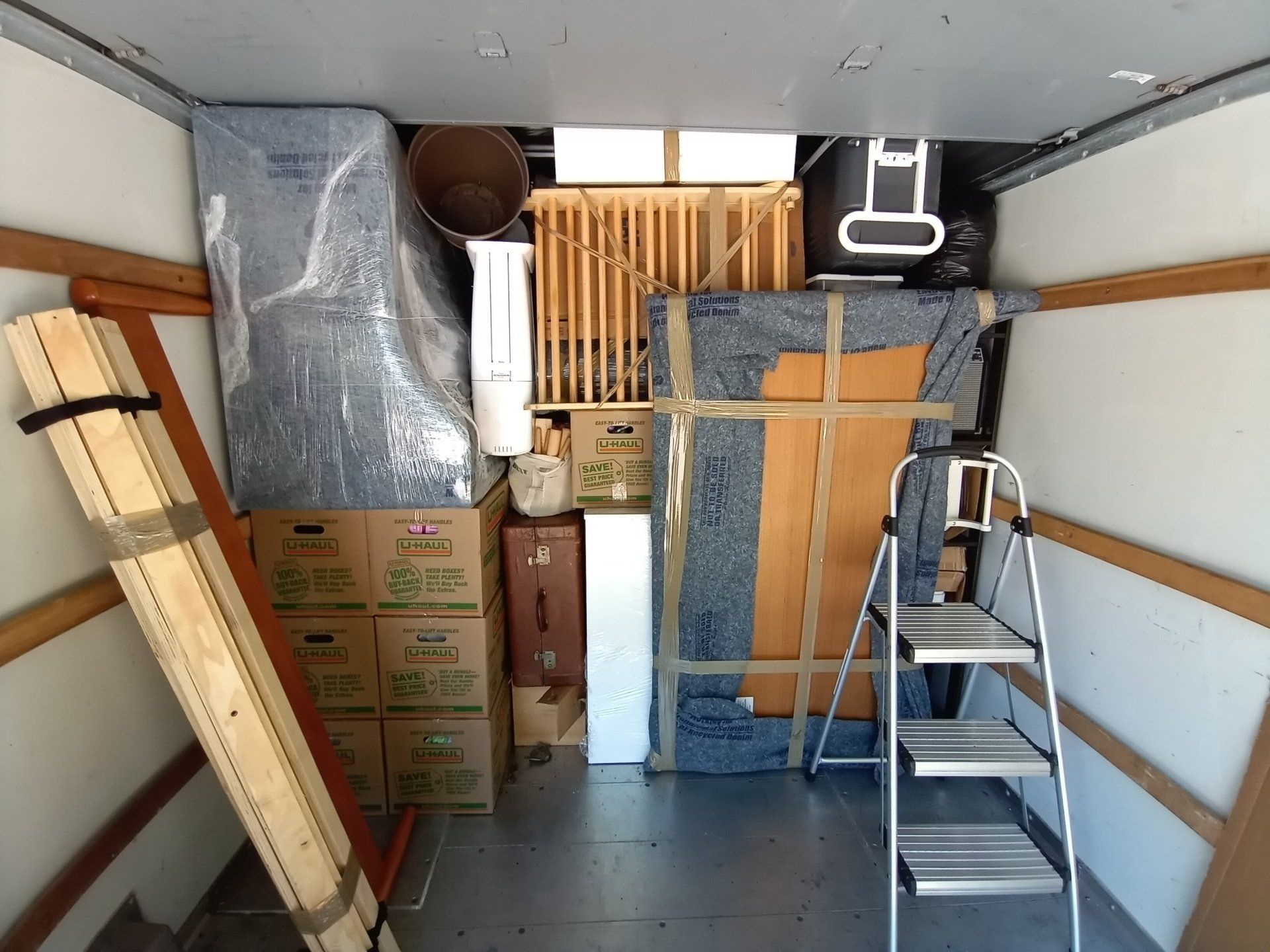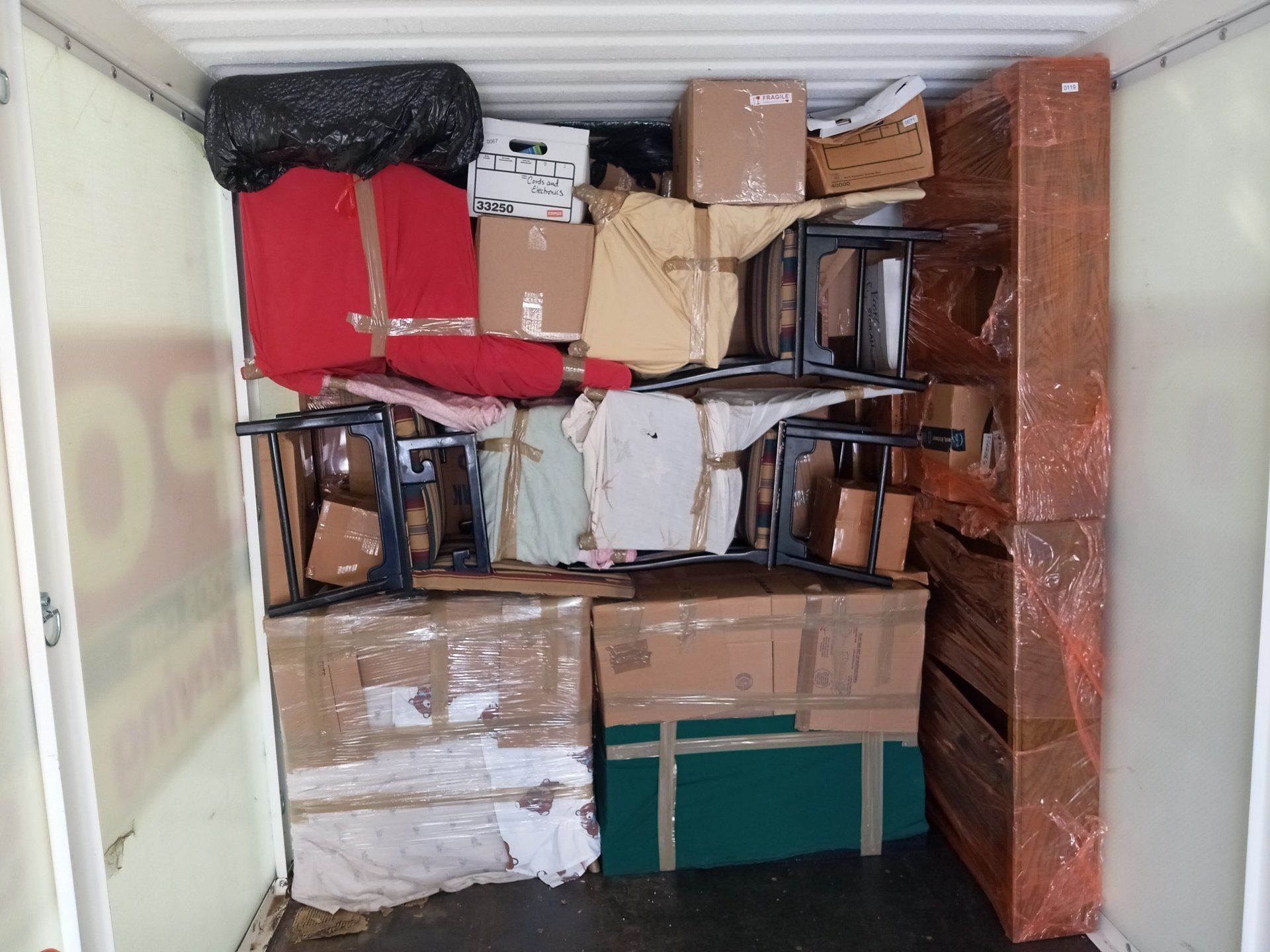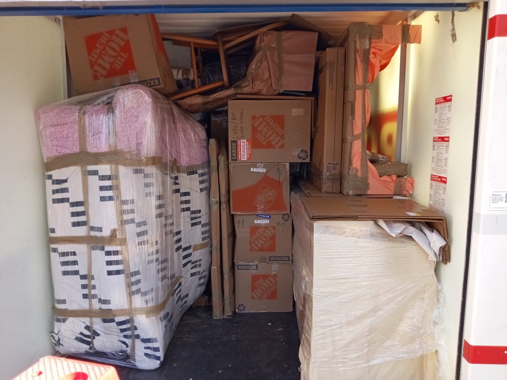 Wrapping with our brown paper pads, usually for storage. Also our handy speed-pak in the back, great for a lot of small items.