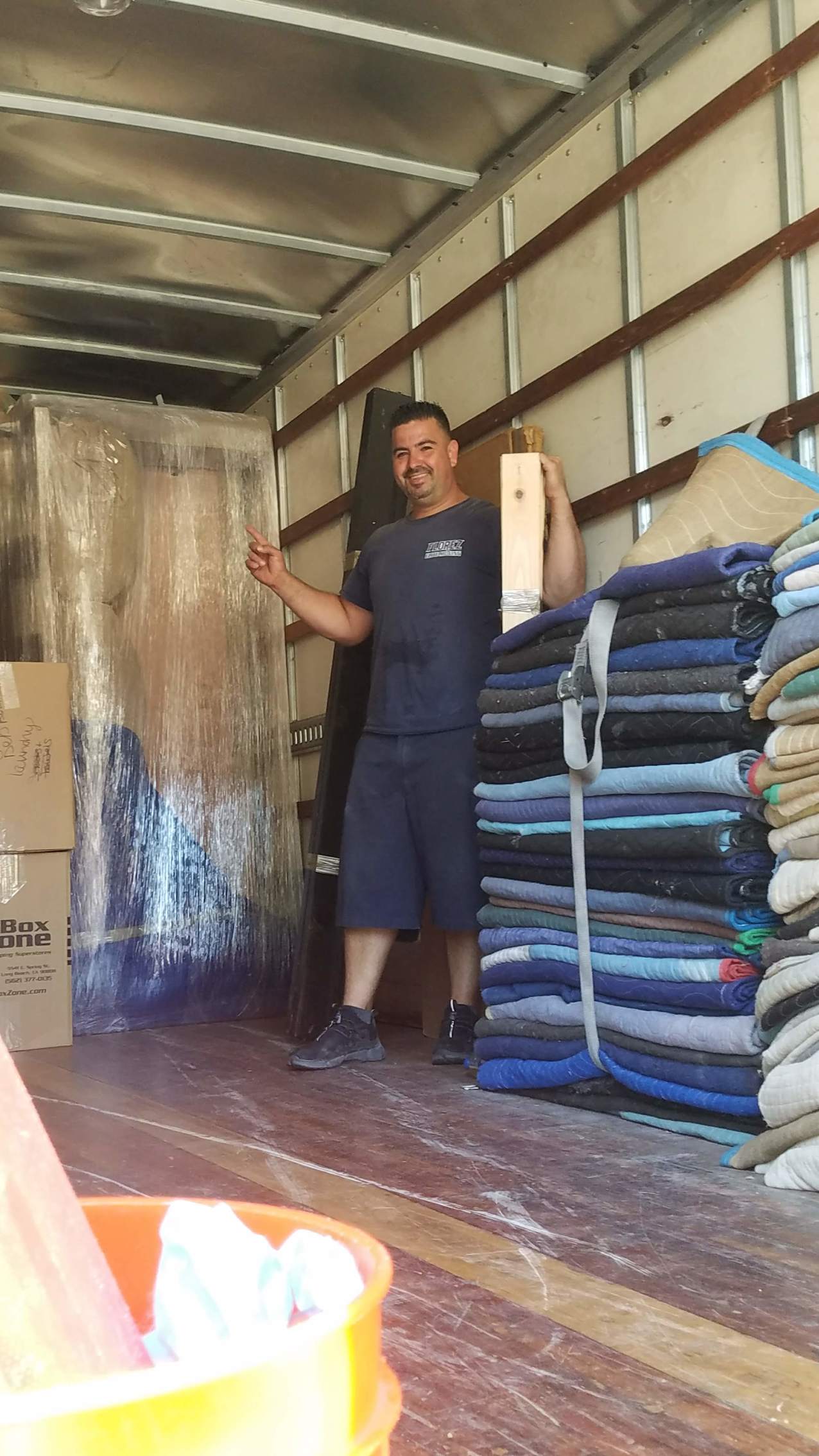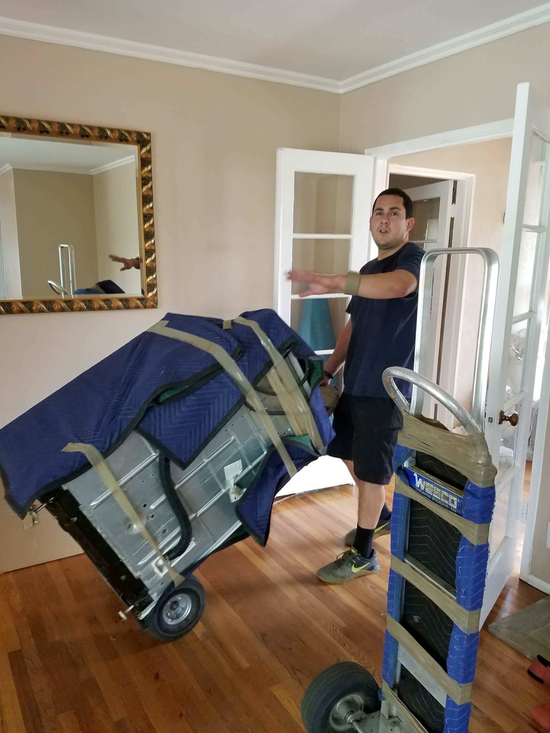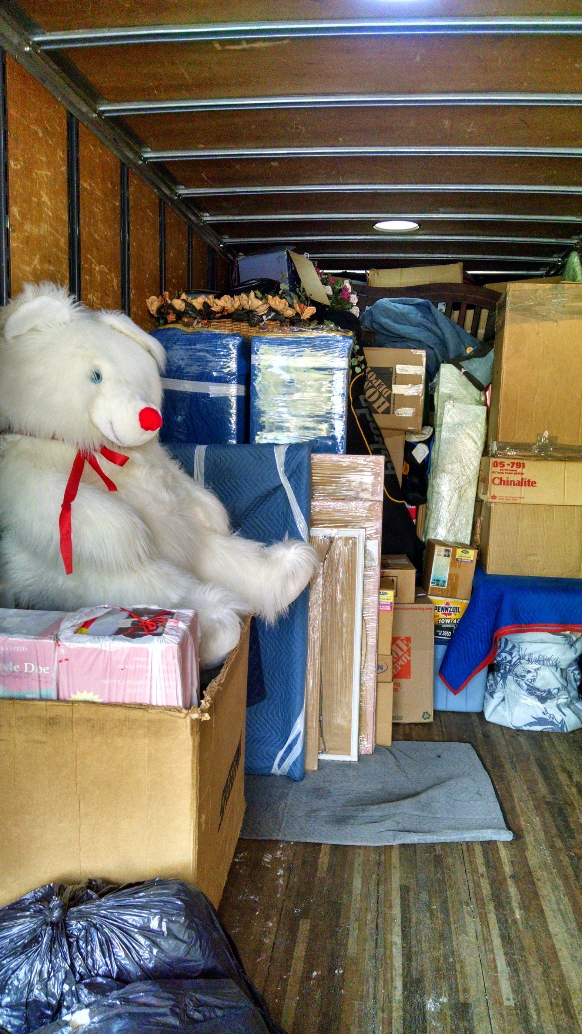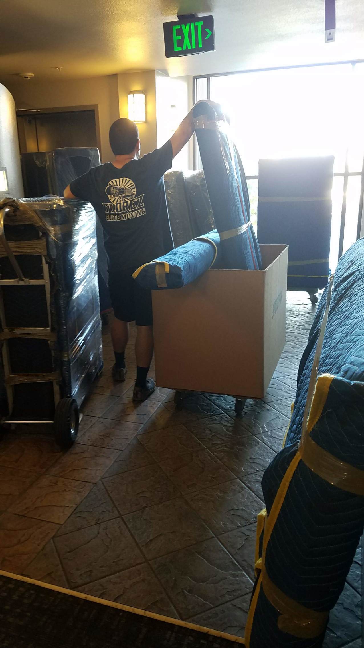 Wrapping with our brown paper pads, usually for storage. Also our handy speed-pak in the back, great for a lot of small items.